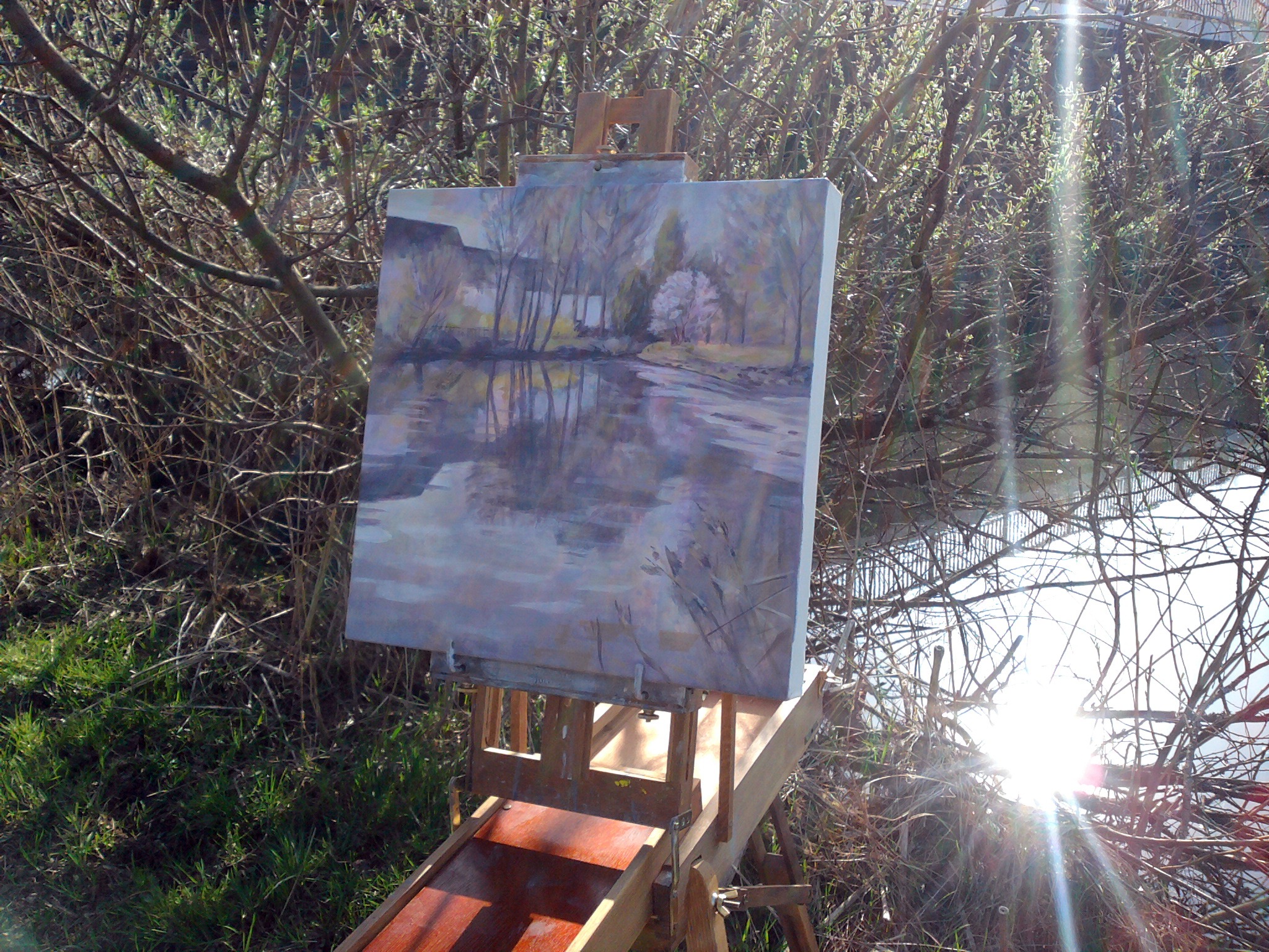 Dieses Acryl-Gemälde entstand am 25. und 26. März 2022 an der Sieg in Dattenfeld, Rhein-Sieg-Kreis.